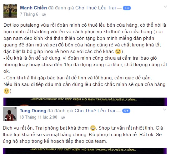 - Chất lượng đồ thuê tốt